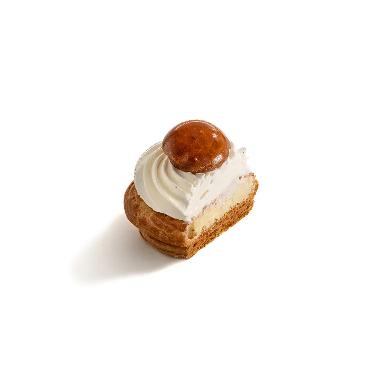 مناسب برای یک نفر. نان هزارلای تهیهشده با کره که روی آن نان شوی پر شده با کرم پتیسیر وانیل قرار میگیرد و با خامه سبک طعمدارشده پوشانده شده و در انتها با شوی کاراملی پر شده با کرم پتیسیر وانیلی تزئین میشود.