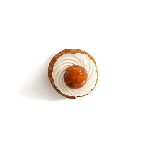 مناسب یک نفر، نان شوی ترد که با کرم پتیسیر کارامل پر شده و با گلیز کارامل روکش شده است.حدودأ 13 سانت ...