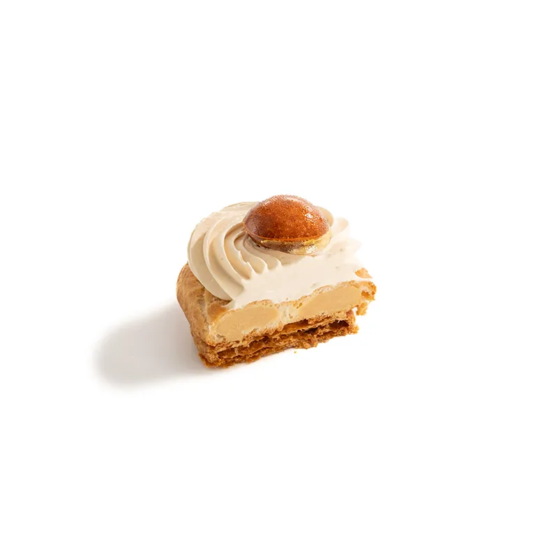 مناسب برای یک نفر. نان هزارلای تهیهشده با کره که روی آن نان شوی پر شده با کرم پتیسیر کارامل قرار میگیرد و با خامه سبک طعمدارشده پوشانده شده و در انتها با شوی کاراملی پر شده با کرم پتیسیر کاراملی تزئین میشود.