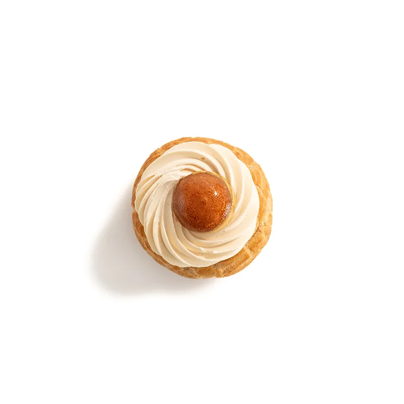 مناسب یک نفر، نان شوی ترد که با کرم پتیسیر کارامل پر شده و با گلیز کارامل روکش شده است.حدودأ 13 سانت ...